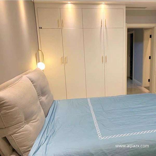 餐廳比較簡約,柜子是定制的,白色平板門+金屬門把,中間鏤空,放置一些小物件。燈具購買了一款有個性的,提升餐廳的品格,餐桌椅是宜家的,深藍色的椅子+金屬椅腳,輕奢感十足,讓你在家吃飯也有種在餐廳就餐即視感。臥室: